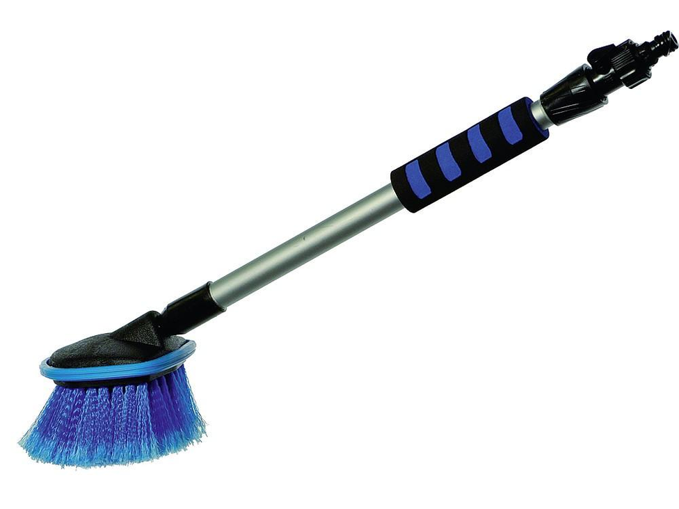 Eine Wachbürste mit Aluminium Stiel. Mit Wasserdurchlauf, Superweicher Waschbürste und Schnellanschlusskupplung.